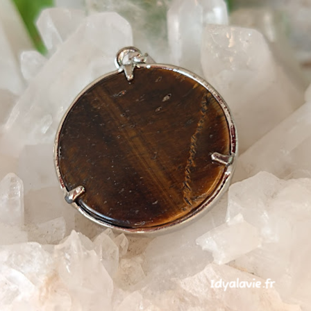 Pierre d'Oeil de tigre enfermée dans un pendentif Fleur de vie.
