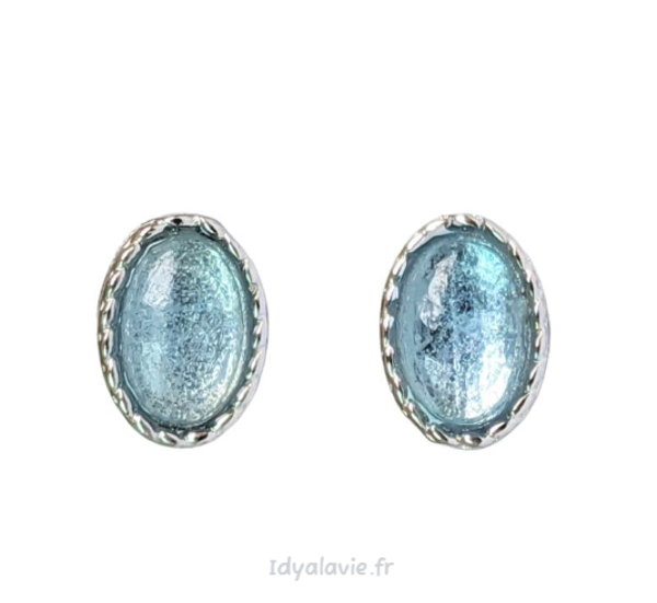 Paire de solitaires en cuivre blanc avec 2 pierres ovales en aigue marine.