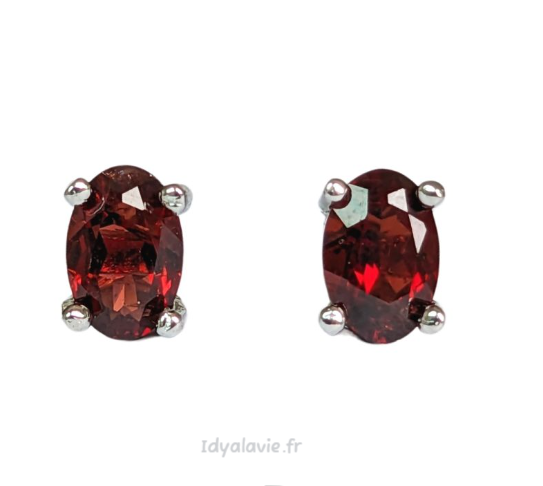 Boucles d'oreilles solitaires grenat rouge facettées