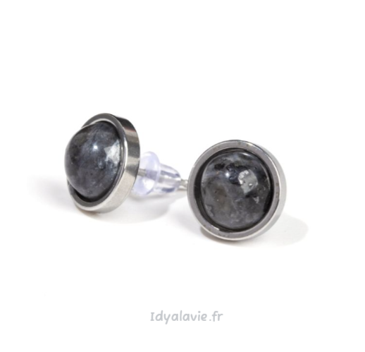 Boucles d'oreilles solitaires larvikite rondes