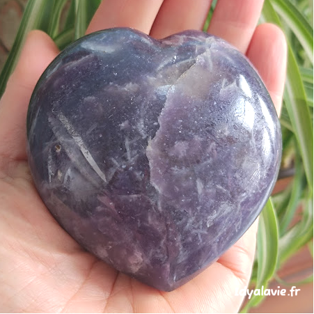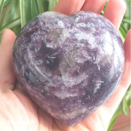 Cœur généreux de lépidolite avec inclusion de tourmaline
