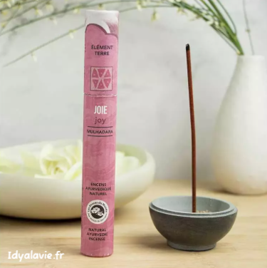 Les bâtonnets d'encens Joie stimulent le chakra Racine, notre point d'ancrage, reliant l'esprit à la matière.