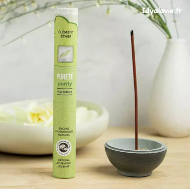 Les bâtonnets d'encens Pureté, agissant sur le chakra de la gorge, favorisent une communication sincère et alignent les centres d'énergie.