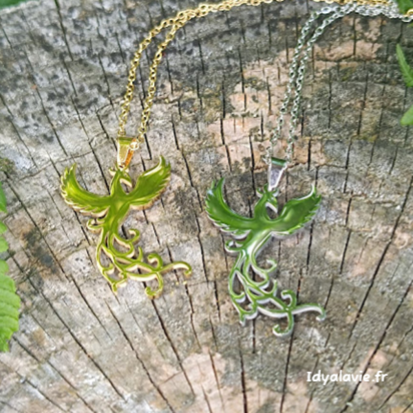 Laissez la magie opérer avec ce pendentif Phénix, finement ciselé qui capture l'élégance de l'oiseau mythique en plein envol.