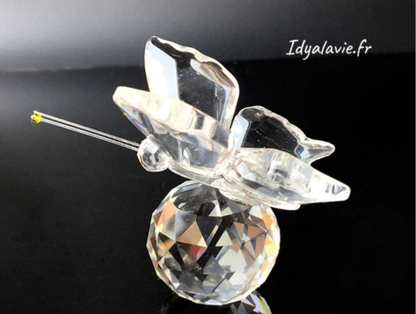 Esprit printannier pour cette petite figurine d'un papillon posé sur une boule en verre facetté à poser.