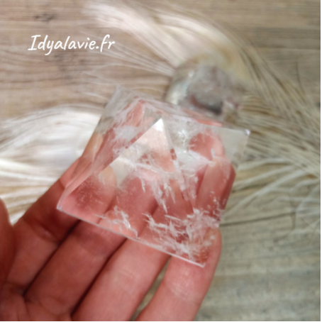 La forme de la pyramide va concentrer l'énergie du cristal vers sa pointe, ce qui va amplifier encore davantage le rayonnement du quartz déjà bien spécifique à l'état naturel.