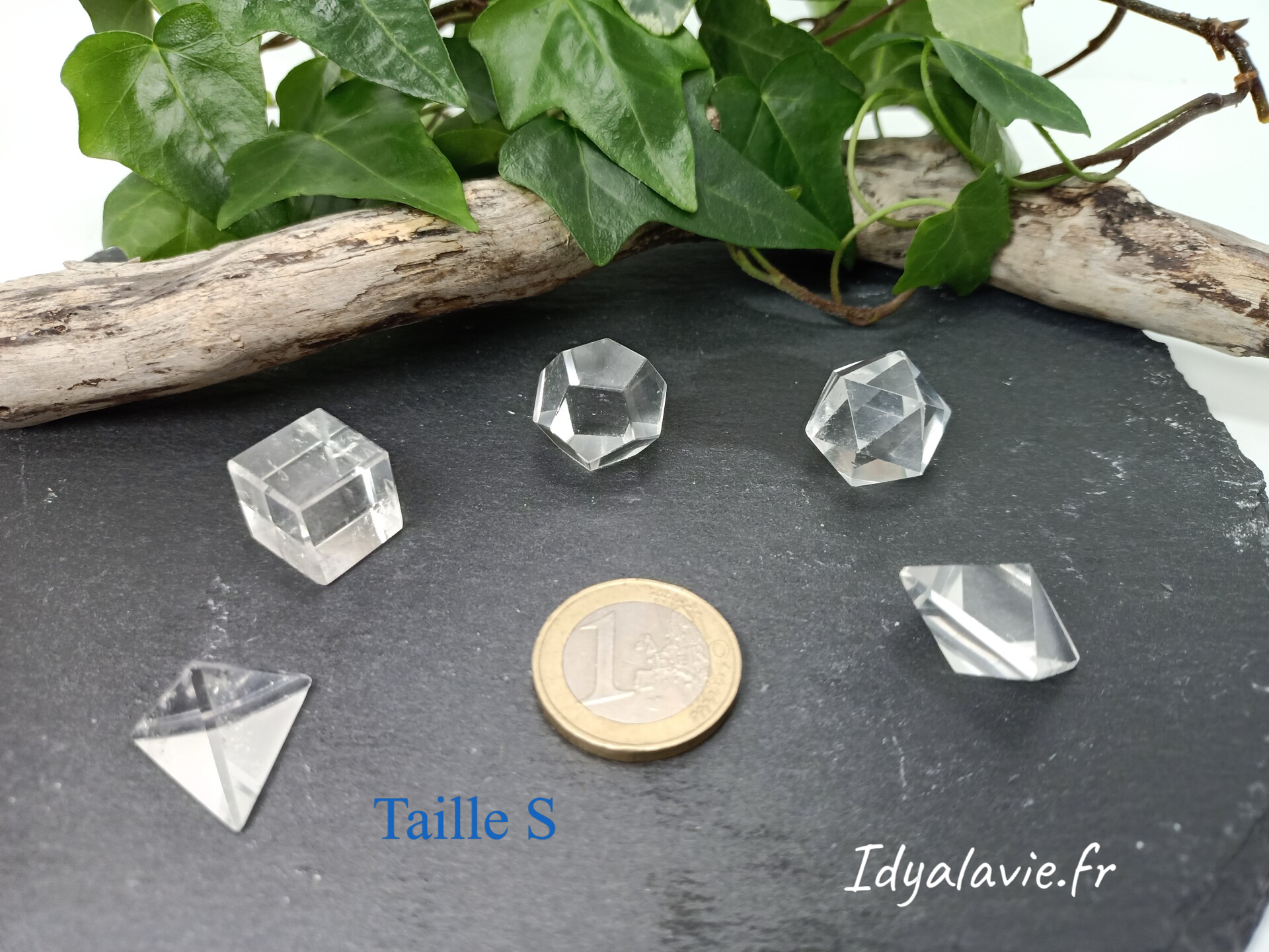 - Hexaèdre (6 faces, 12 côtés) est lié à la Terre, stabilité et maîtrise. Sa vibration va favoriser stabilité, précision mentale et sécurité. Il nous permet de développer un mental précis pour faire de bon choix dans notre gestion du monde matériel et de carrière professionnelle ou non.