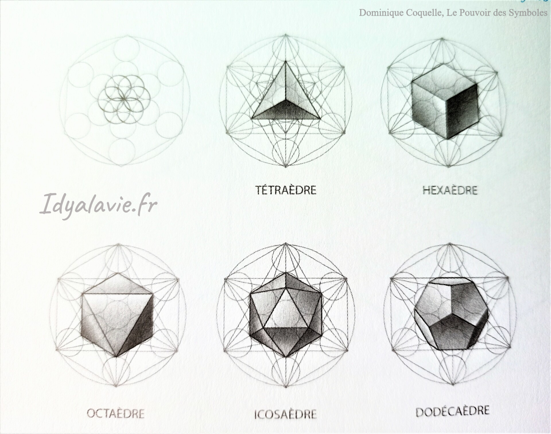 Tous inscriptibles dans une sphère, ils sont parfaitement équilibrés et équilibrants, et sont associés aux 5 éléments: