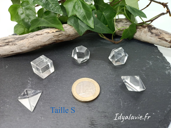 - Octaèdre (8 faces, 12 côtés) est lié à l'élément Air, équilibre et subtilité. Sa double pyramide évoque la manifestation de l'esprit sur la matière. Sa vibration très équilibrante va favoriser cette élévation de conscience et une bonne protection. L'octaèdre nous permet de renforcer l'aura pour augmenter notre protection psychique et nous met en relation avec notre âme émotionnelle. Aide à développer notre sensibilité aux mondes subtils.