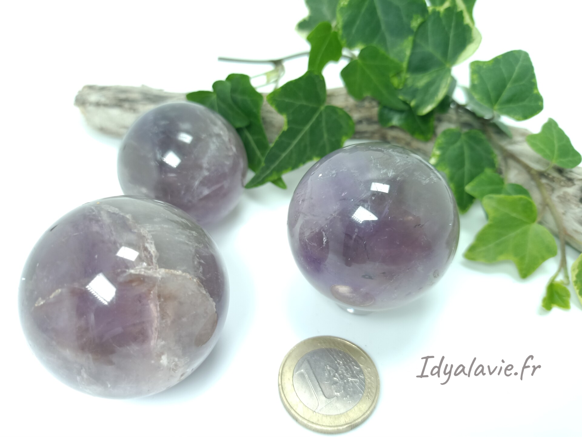 Sphère Améthyste claire chevron 38 mm