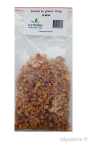 Utilisation: Faire brûler la résine sur un brûleur d'encens pour charbons de bois, ou en utilisant un tamis spécial encens, de sorte que la résine puisse brûler plus lentement que si vous la laissiez directement sur le charbon de bois . Vous pouvez également choisir de mélanger la résine avec d'autres types d'encens.