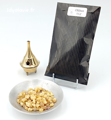 L’oliban, également connu sous le nom d’encens Frankincense, est extrudée d'un arbre sacré le Boswellia sacra depuis des millénaires. Elle est récoltée en incisant l’écorce de l’arbre, permettant à la sève de s’écouler et de durcir à l’air libre. Les rois mages l'ont offerte à Jésus en souhait de longue vie, et valait jadis plus que l'or.
