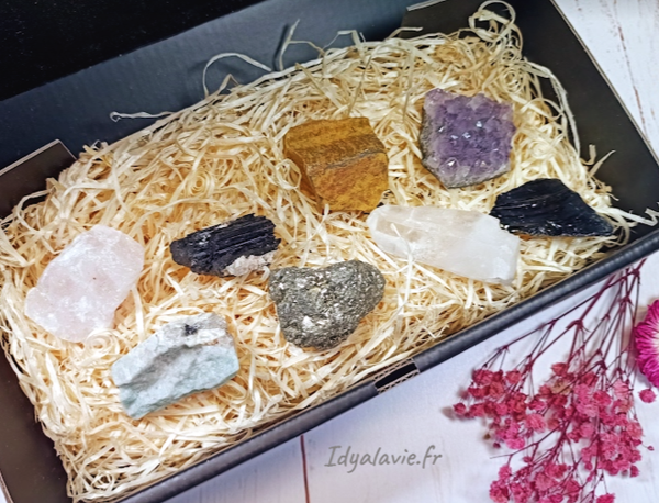 Vous trouverez dans ce coffret 8 pierres brutes incontournables pour s'initier à la magie cristalline.