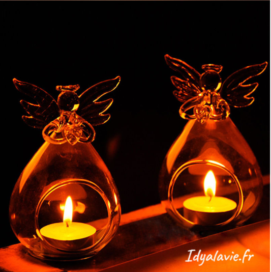 Adorable petit ange boule en verre soufflé pouvant être utilisé comme bougeoir ou comme support à offrande.