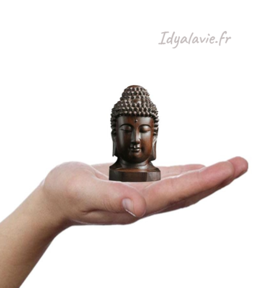 Petite figurine artisanale aspect bois de Bouddha Shakyamuni.