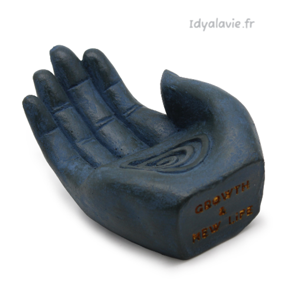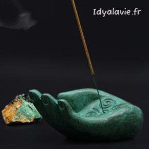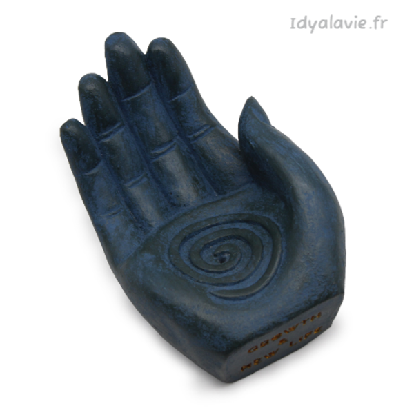 Porte-encens façonné à la main, chaque modèle est unique. Avec une inscription et un symbole de Fertilité gravée dans la paume.