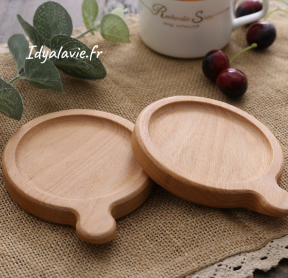 Petit support bois avec poignée multi-usage pour protéger vos meubles du chaud ou pouvoir déplacer facilement un brûleur à encens, une bougie ou même une tasse sans vous brûler.