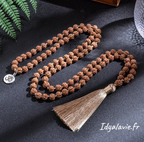 Malas 108 perles en graines de Rudrakrshas 5 faces 7-8 mm