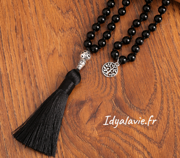 Mala 108 perles en pierres naturelles d'Onyx noir 8 mm